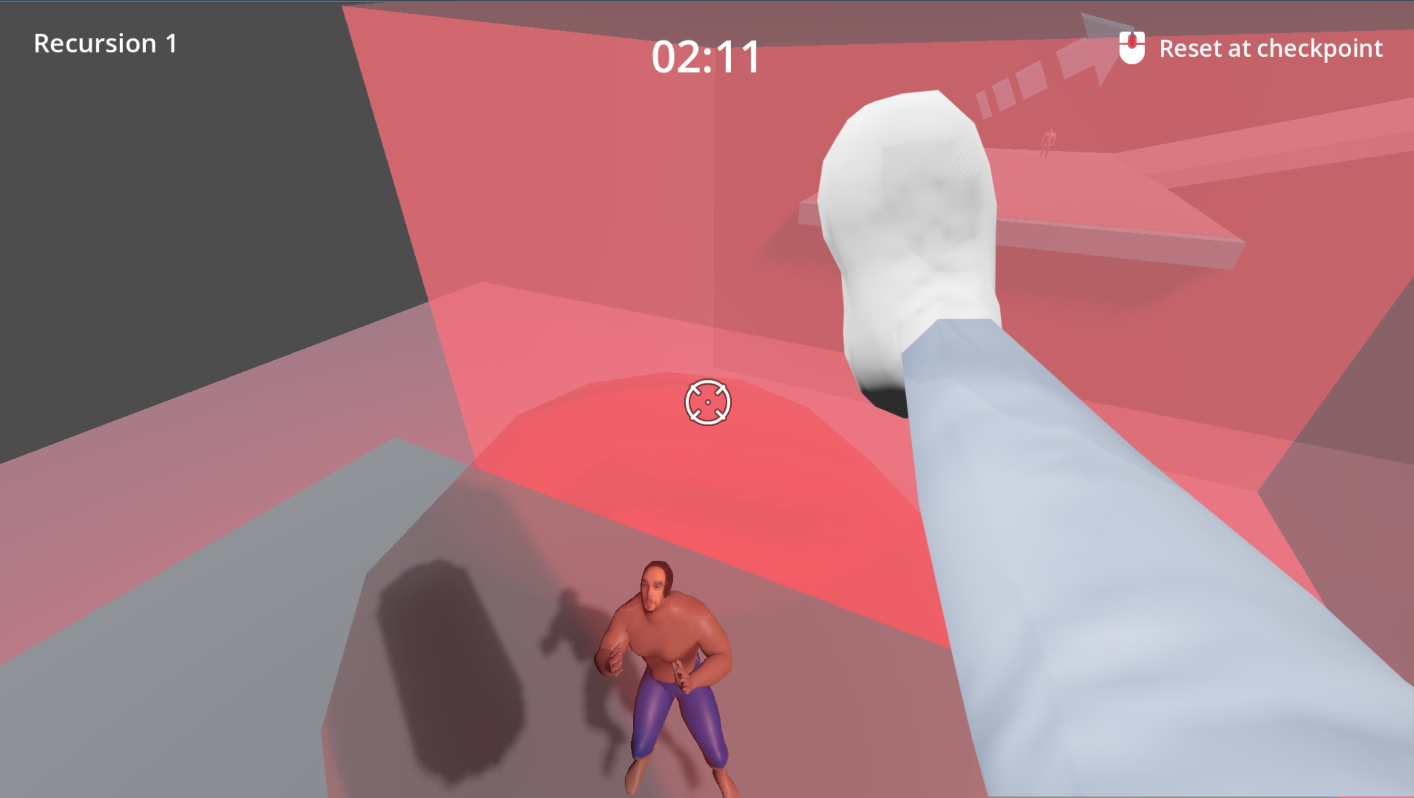 A 3D first person parkour platformer, set in a recursive nightmare of infinite face kicking.