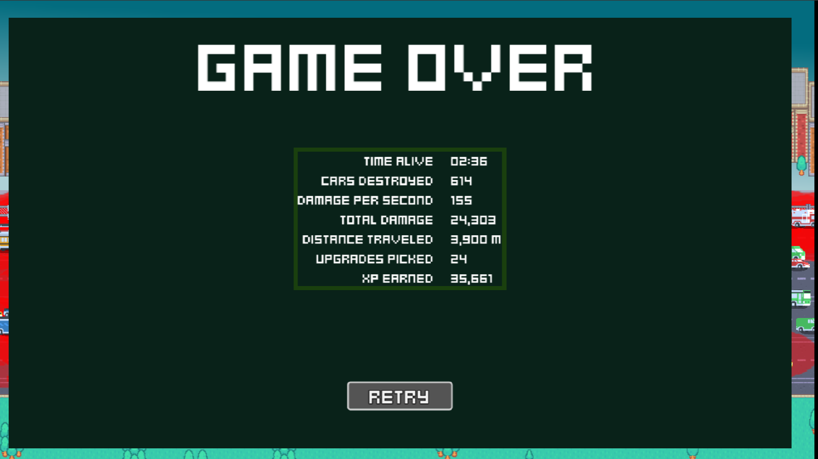 Some things to note: At some point the gas refill would only fill the bar to about 70% or less, probably not intentional? Sometimes my truck would get stuck for a brief moment which felt a little awkward. Also, the music does not loop which leaves me listening to sound effects for the rest of the game hahaha
